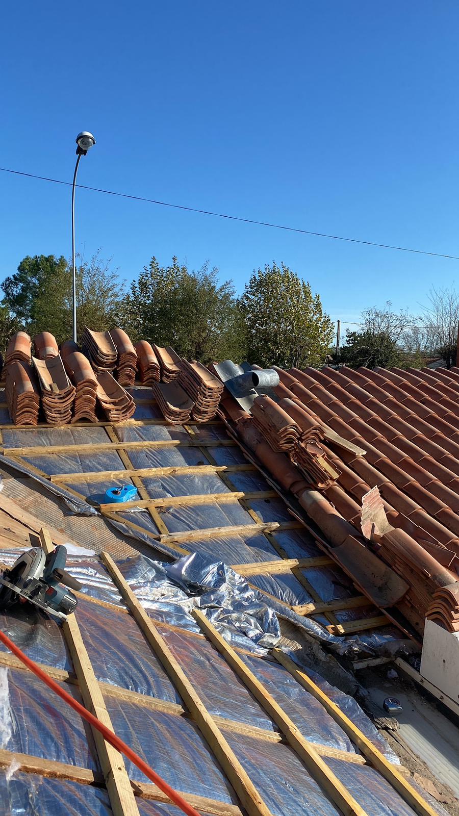 La rénovation de la couverture d'une maison par des couvreurs inclut le remplacement de tuiles, l'application de nouveaux revêtements et la réparation de fuites.